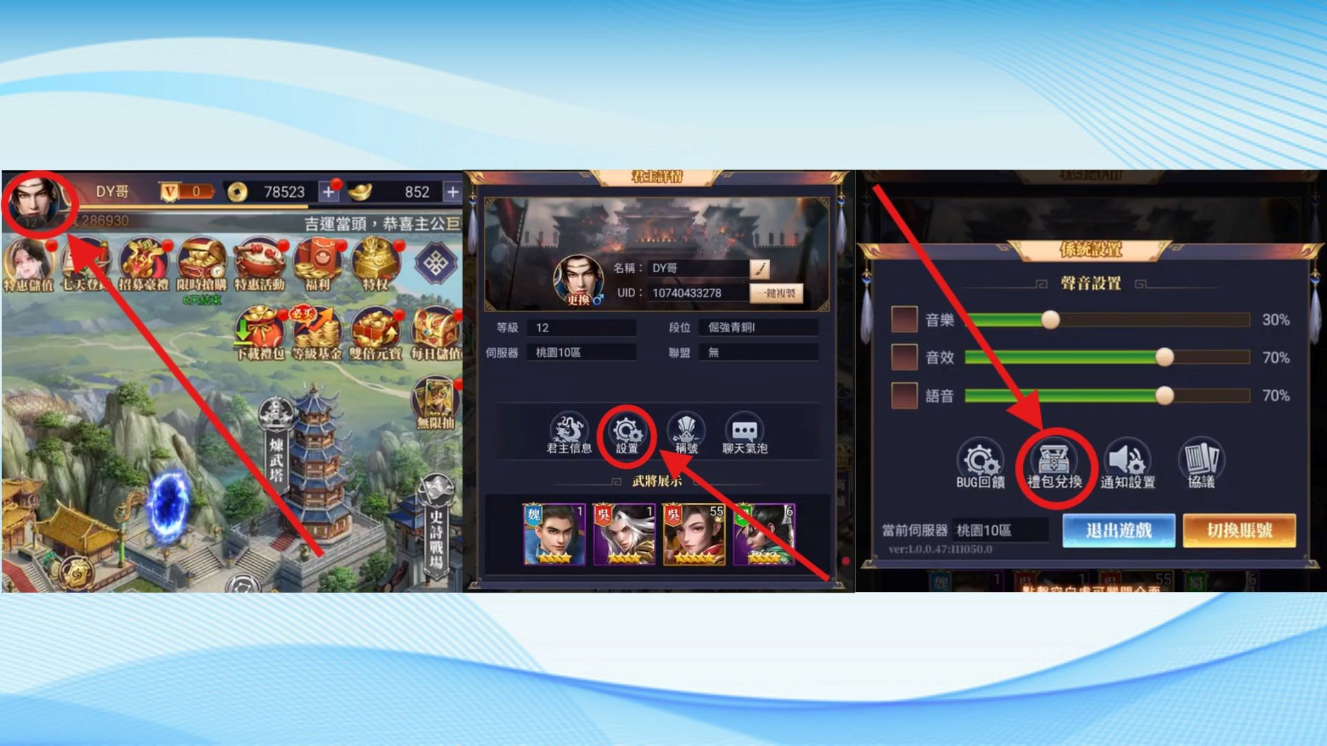 - 打開《三國阮卡勇:名將爭霸》遊戲,在主畫面點擊左上角「頭像」進入。
