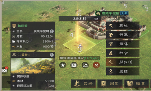 - 建議:加入活躍同盟,軍屯收益會高很多。