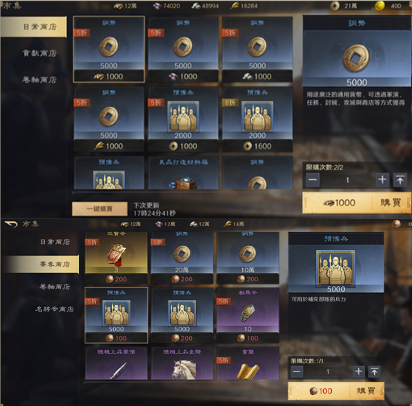 - S2 開始可以用榮耀點換預備兵與銅幣,非常實用,記得每天看一下。