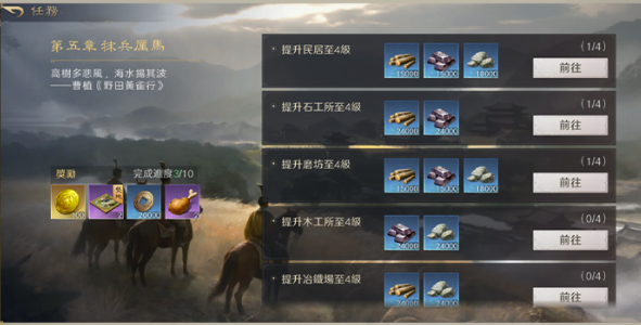 軍演、遠徵、討伐賊寇、每日任務,全部都能累積大量資源。