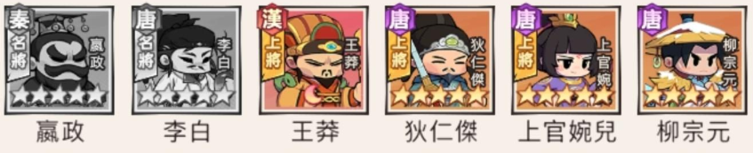 推薦組合: 嬴政、李白、王莽、上官婉兒、柳宗元、狄仁傑