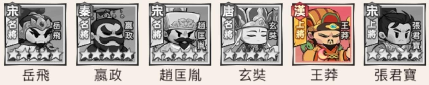 推薦組合: 岳飛、嬴政、王莽、玄奘、張君寶、趙匡胤