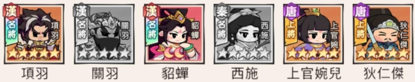 推薦組合: 項羽、關羽、上官婉兒、西施、狄仁傑、貂蟬