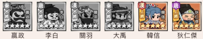 推薦組合: 嬴政、李白、關羽、大禹、韓信、狄仁傑