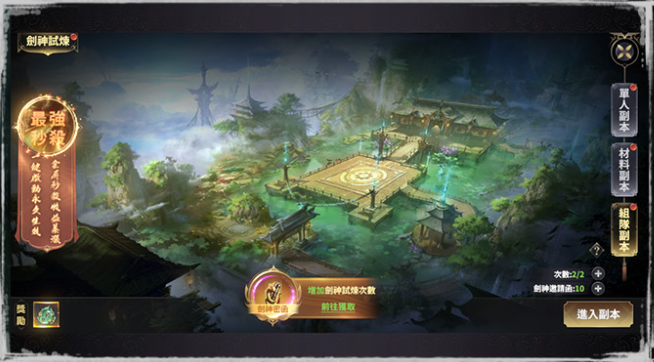 當角色達到 160級 後,就能進入【副本】-【組隊副本】-【劍神試煉】。